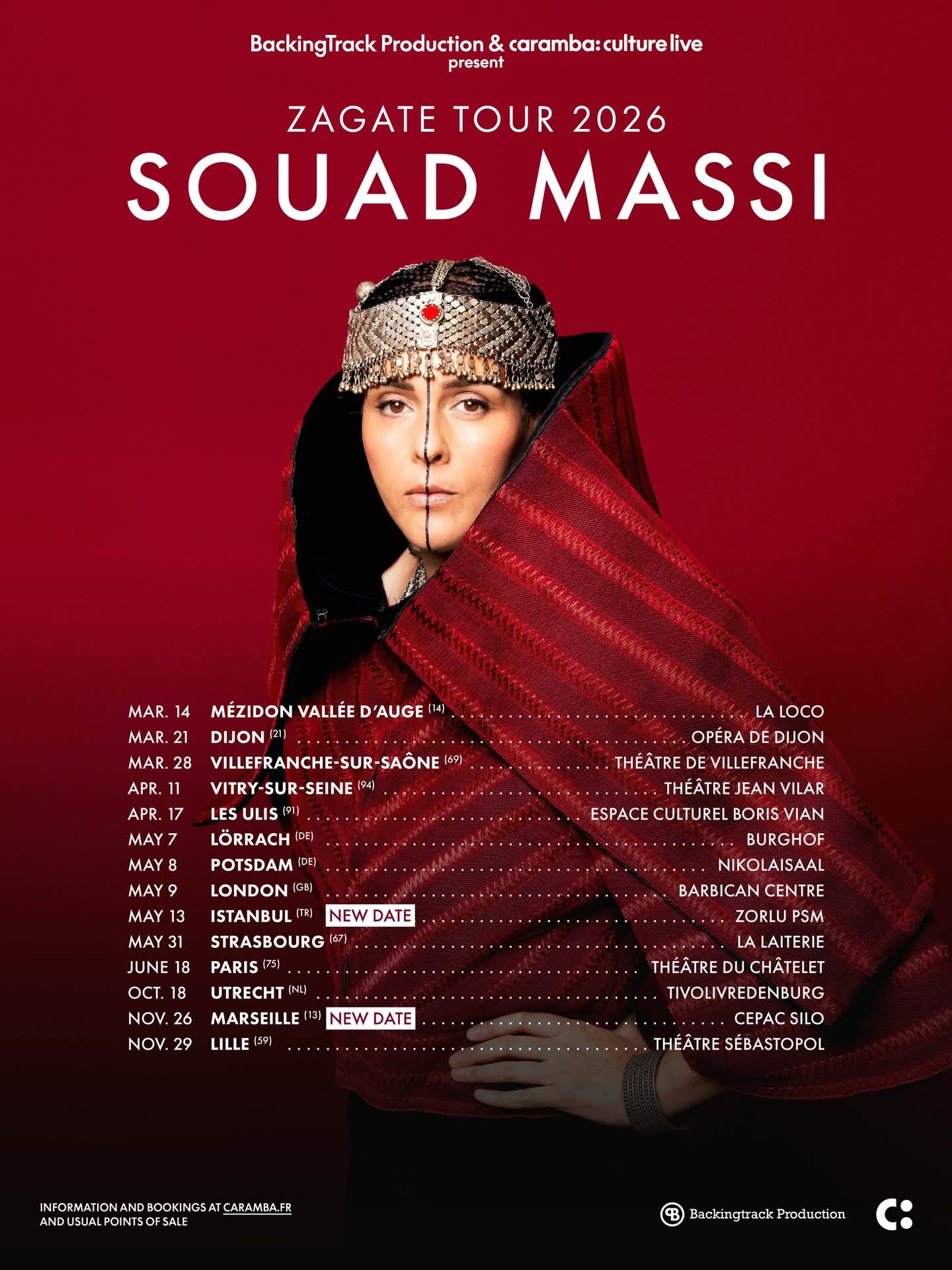 Souad Massi présente Zagate Tour 2026 au Théâtre du Châtelet à Paris le jeudi 18 juin 2026. Le concert est annoncé par Caramba avec une date parisienne dans la capitale.